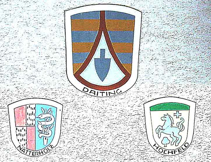Seit dem 01.07.1900 wurde Daiting durch die Post bedient und am 11.08.1920 brannte in Daiting zum ersten Mal elektrisches Licht. Seit dem 1.1.1975 gehören zur Grossgemeinde Daiting die Orte Natterholz, Reichertswies, Unterbuch, Hochfeld. Die Gemeinde Daiting ist Mitglied der Verwaltungsgemeinschaft Monheim.